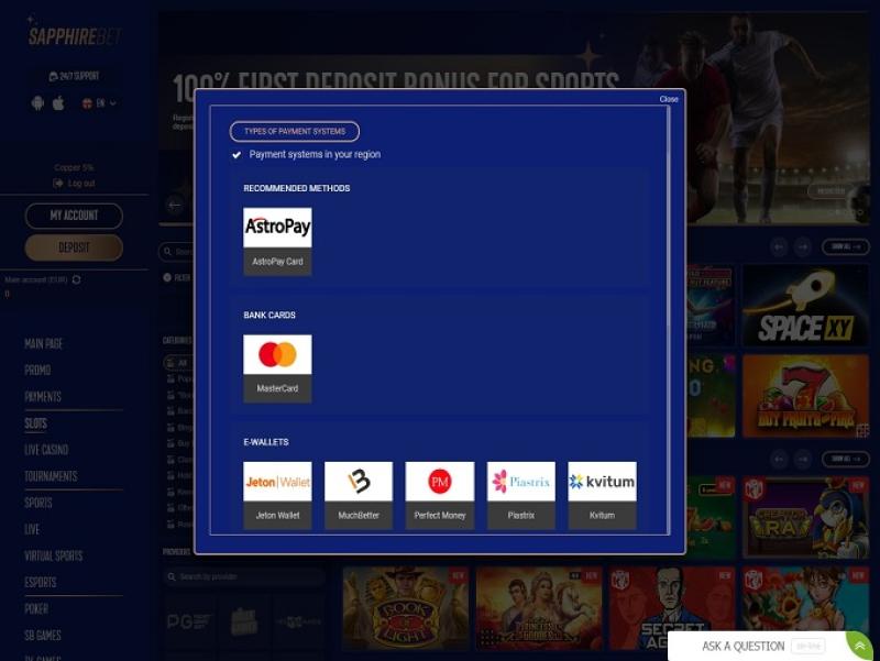 خيارات الخدمات المصرفية في Sapphirebet Casino