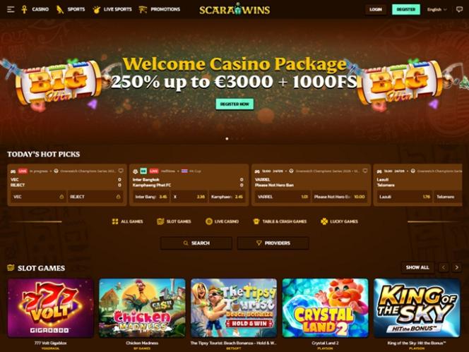 يقدم كازينو Scarawins أجواء مصرية مع آلاف الألعاب، وكتاب رياضي كامل، ومكافآت ولاء رائعة، واللعب الآمن المدعوم بترخيص MGA.