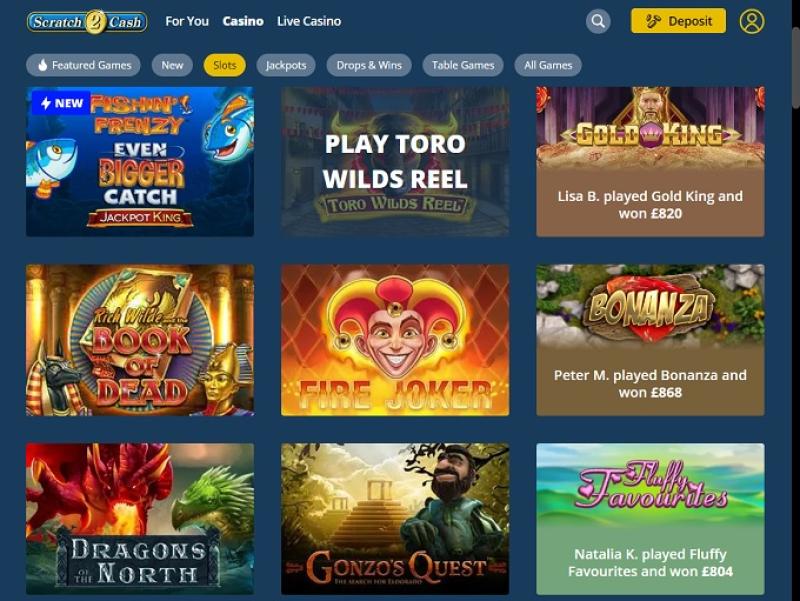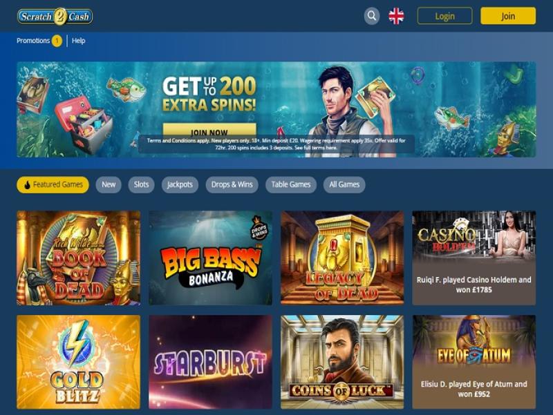 يقدم كازينو سكراتش تو وين مجموعة متنوعة من ألعاب الفيديو والسلوتس الكلاسيكية، من مطورين كبار مثل نت إنت، ونيو جيمز، وأمايا، وكويك سبين. كما يقدم الكازينو جوائز كبرى تصاعدية كبيرة وألعابًا عبر الأجهزة المحمولة، والتي تتيح لك اللعب عبر هاتفك الذكي أو جهازك اللوحي.برنامج نقاط المنافسة