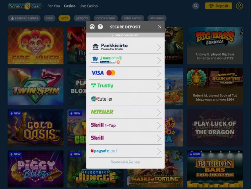 بالاطلاع على الشروط والأحكام في كازينو سكراتش 2 كاش، لا يوجد ما يُظهر استغلالًا أو ظلمًا للاعبين. يتميز النظام المصرفي في سكراتش 2 كاش بالكفاءة، حيث يُتيح الموقع عمليات إيداع وسحب عبر InstaDebit وVisa وMasterCard وClickandBuy وSkrill وNeteller وWire وEntroPay وecoPayz. كما يُمكن الإيداع عبر Maestro وTrustly وPugglePay وiDeal وGiropay وSOFORT وPoli وPaysafecard. أوقات صرف المكافآت في الكازينو معقولة، حيث تُصرف المحافظ الإلكترونية خلال 24 ساعة، بينما تستغرق بطاقات الائتمان من 3 إلى 5 أيام. كما يوجد حد سحب شهري قدره 10,000 جنيه إسترليني، مع أنه من غير المؤكد ما إذا كان هذا ينطبق على الجوائز الكبرى التراكمية أم لا.خيارات الخدمات المصرفية في Scratch 2 Cash