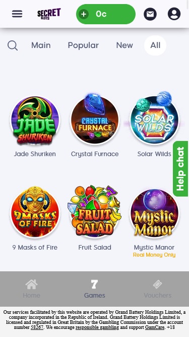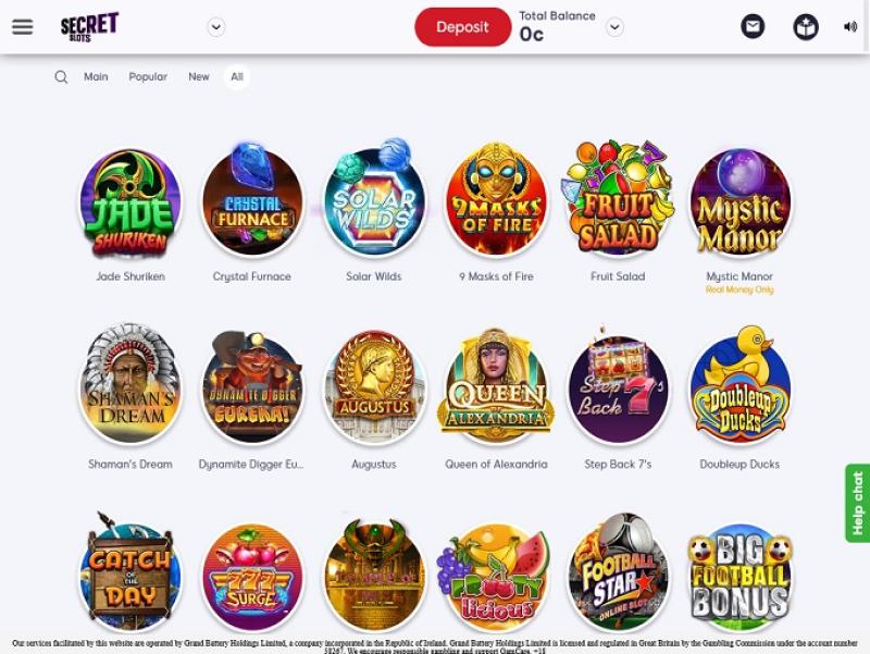 كازينو SecretSlots مدعوم من Microgaming, Net Entertainment, Random Logic, Barcrest, Big Time Gaming, ELK Studios, EYECON, iSoftBet, lightningboxgames, Novomatic, Quickspin, Thunderkick, Yggdrasil, Wazdan, Realistic Games, Pragmatic Play, Red Tiger Gaming, IGT, Red Rake Gaming, Skillzzgaming, Sigma Gaming, Triple Edge Studios, Northern Lights Gaming, Dreamtech Gaming, Bulletproof Games, Gluck Games, Games Global, Wizard Games, Ainsworth, Bally Technologies, Blueprint Gaming, Endemol Games, Greentube, Merkur Gaming, NextGen, Pariplay, WMS, Inspired Gaming, SG Interactive, Reel Time Gaming, Bally Wulff, Storm Gaming Technology, 4ThePlayer, Gamevy, High 5 Games, Pirates Gold Studios, AGS Interactive and Max Win Gaming ، مما يوفر له مجموعة شاملة من ألعاب الكازينو. يُمكن الوصول إلى الكازينو عبر منصة ويب تُتيح لك اللعب مباشرةً من متصفح الويب.