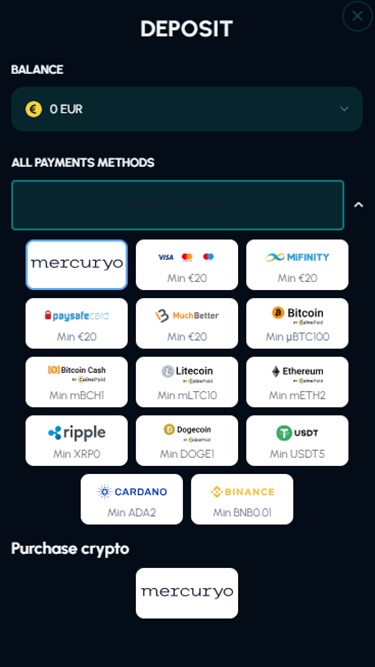 بالإضافة إلى ذلك، ضع في اعتبارك أنه إذا اخترت الدفع بالعملات المشفرة ، فبسبب طبيعتها، لا يمكن تطبيق حدود الإيداع على المعاملات التي تتم من خلال أنظمة دفع معينة.