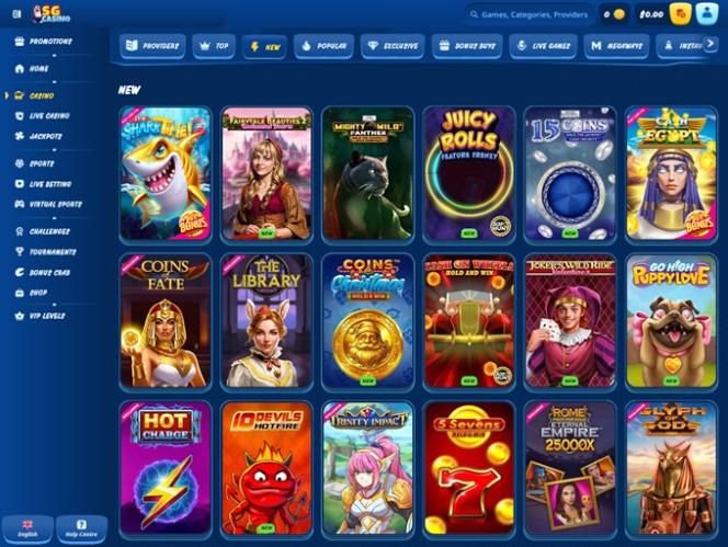 عندما يتعلق الأمر بكازينو SG، سيسعدك معرفة أن هناك العديد من الأسماء البارزة التي ستوفر للاعبين ساعات طويلة من المرح. من بين عمالقة هذا المجال، نذكر Quickspin وPragmatic Live وNetEnt وMicrogaming وSpinomenal، وغيرها الكثير.