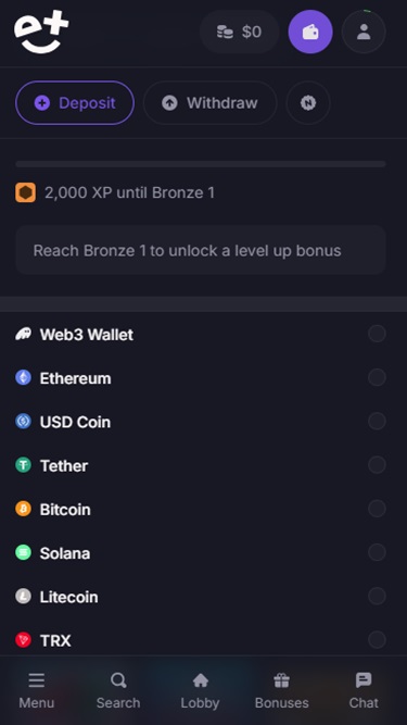 بالنسبة لخيارات الدفع، يمكنك الإيداع باستخدام بطاقات ماستركارد أو فيزا التقليدية. كما يمكنك الإيداع باستخدام العملات المشفرة، إذ أصبح هذا الخيار شائعًا جدًا في العامين الماضيين، ونتمنى أن تُدرج هذه الخيارات من قِبَل شركات الإيداع.