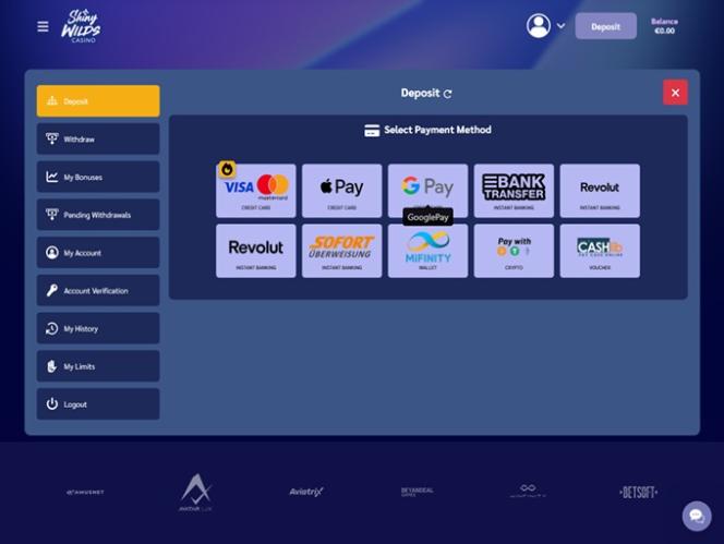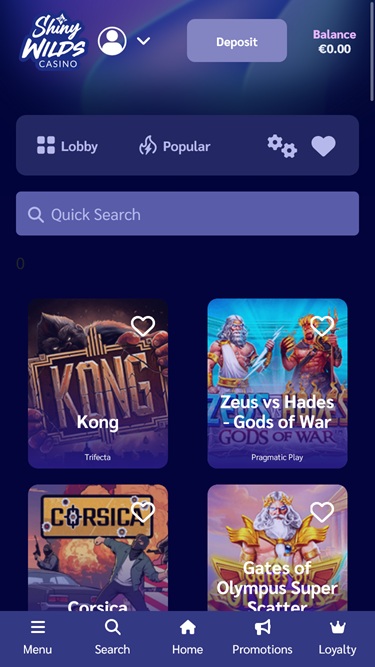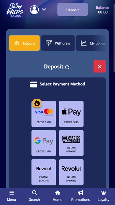 جميع ألعاب كازينو "شايني وايلدز" مُحسّنة بالكامل لضمان وصول سلس على كلٍّ من الهواتف المحمولة وأجهزة الكمبيوتر. لذا، سواء كنت تستمتع بالألعاب أثناء التنقل عبر هاتفك الذكي أو تسترخي في المنزل على حاسوبك المحمول أو المكتبي، يمكنك توقع أداء سلس، ورسومات ممتازة مع اهتمام بالتفاصيل، وتصفح سهل الاستخدام ، وغير ذلك الكثير. للوهلة الأولى، قد يصبح هذا الكازينو بسهولة من بين الكازينوهات المفضلة لدى المقامرين، ونحن متحمسون للتعمق أكثر في عروضه!