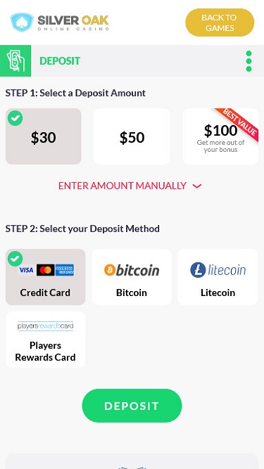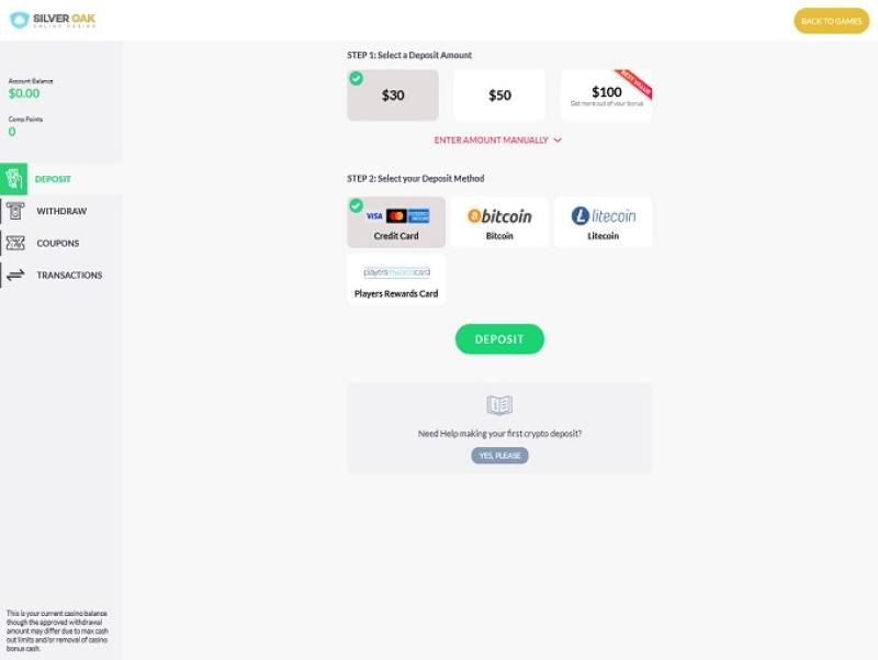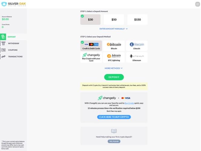 خيارات الخدمات المصرفية في Silver Oak Casino