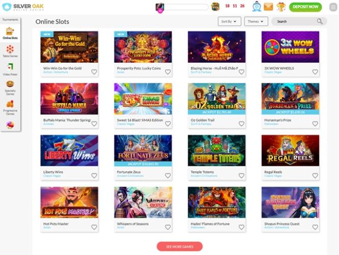 تشكل ماكينات القمار جزءًا كبيرًا من مجموعة ألعاب Silver Oak Casino، وهي تتضمن كل من ماكينات القمار بالفيديو والماكينات الكلاسيكية مع سلسلة من الجوائز الصغيرة المتاحة للفوز بها.
