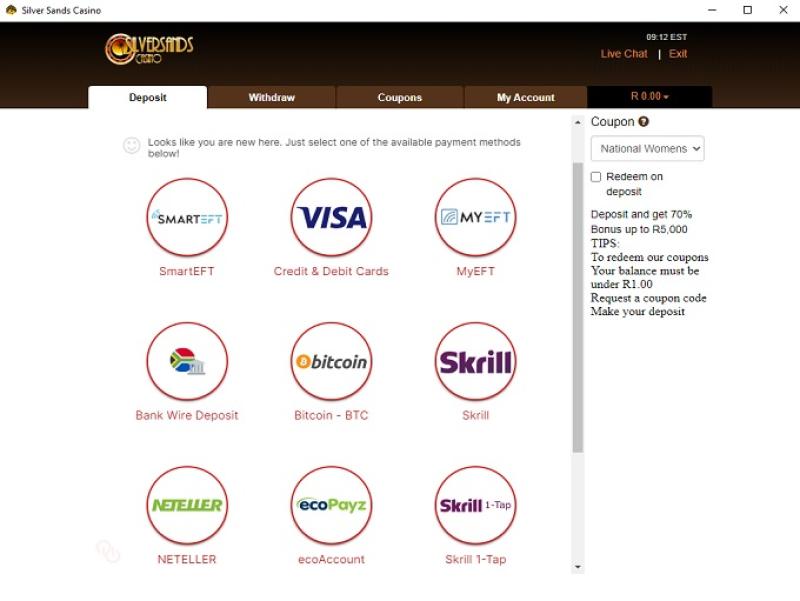 خيارات الخدمات المصرفية في Silver Sands Casino (ZAR)