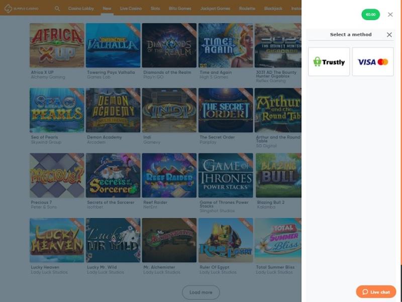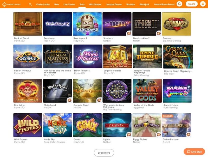 يحتوي كازينو Simple على كازينو مباشر كامل يكمل مجموعة ألعاب الكازينو القياسية الموجودة على الموقع.