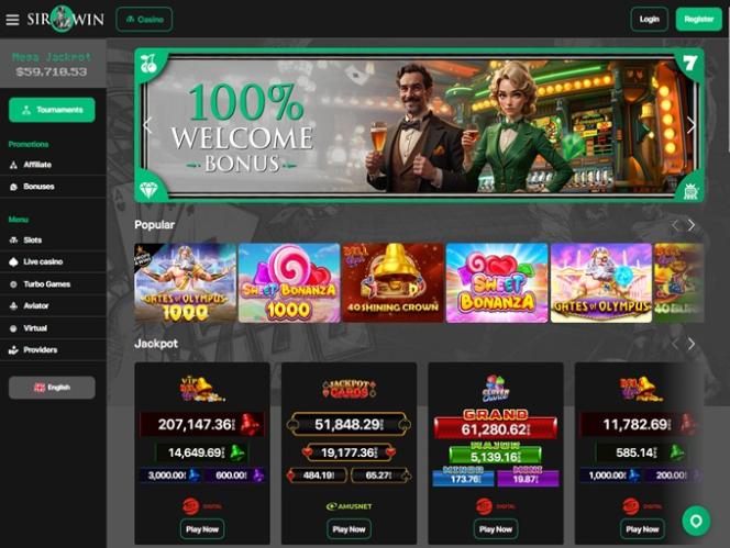 إلى جانب عملاء العلامة التجارية المستهدفين، نرحب أيضًا باللاعبين الدوليين الآخرين، لذا حتى لو كنت من بلد آخر، تابعنا! يقدم SirWin فعاليات رياضية ممتازة وألعاب كازينو راقية، ويبدو جذابًا للوهلة الأولى.