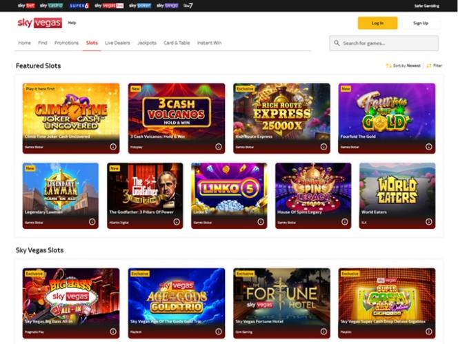 تتوفر مجموعة كبيرة من ماكينات القمار في سكاي فيغاس، حيث يقدم الكازينو ألعابًا شهيرة مثل Aliens وBirz وSlots 'o Gold وWish Upon a Jackpot وSouth Park وغيرها الكثير. تُعد ماكينات القمار بالفيديو الخيار الأمثل، مع توفر ألعاب كلاسيكية بثلاث بكرات أيضًا. كما تتوفر جوائز كبرى تصاعدية، ويمكن أن تصل قيمة الجوائز إلى آلاف الجنيهات الإسترلينية في أي وقت.
