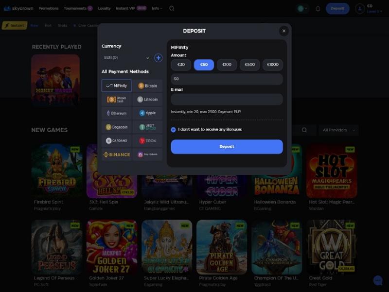 سيسعد اللاعبون الذين يفضلون استخدام خيارات الدفع بالعملات المشفرة بمعرفة أن SkyCrown يسمح بالمعاملات في العديد من العملات المشفرة الشهيرة.