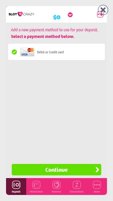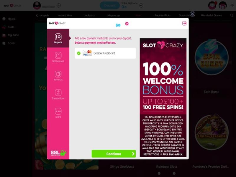 يتم تشغيل Slot Crazy Casino بواسطة Barcrest, EYECON, Pragmatic Play, Skillzzgaming, Triple Edge Studios, Northern Lights Gaming, Stormcraft Studios, All41 Studios, Gameburger Studios, Neon Valley Studios, SpinPlay Games, Wizard Games, Bally Technologies, Blueprint Gaming, NextGen, Pariplay, WMS, Inspired Gaming, Gaming Realms, SG Interactive, Scientific Games, Reel Time Gaming, Old Skool Studios, Slingshot Studios, Fortune Factory Studios, AGS Interactive, Alchemy Gaming, Half Pixel Studios and Aurum Signature Studios ، ويتم توفير ألعابه من خلال منصة تعتمد على الويب بالإضافة إلى موقع محمول.خيارات الخدمات المصرفية في Slot Crazy