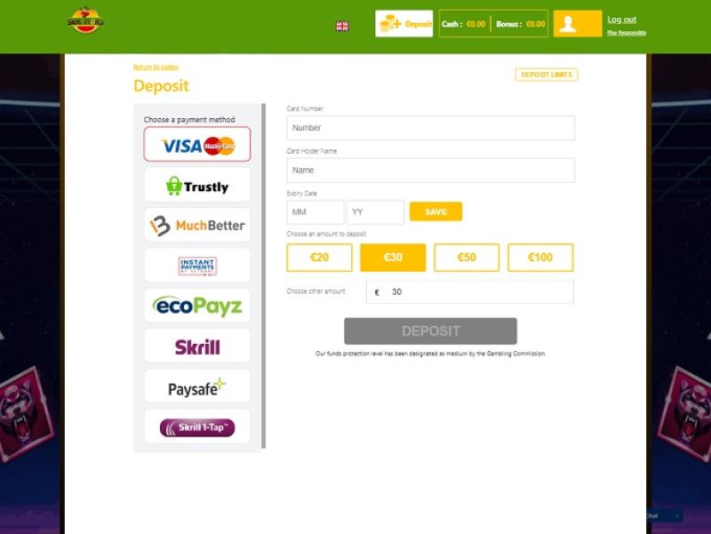يتم تشغيل Slot Fruity Casino بواسطة Microgaming, Net Entertainment, Big Time Gaming, ELK Studios, Evolution Gaming, EYECON, Habanero Systems, lightningboxgames, Yggdrasil, Realistic Games, Pragmatic Play, Red Tiger Gaming, IGT, Skillzzgaming, Golden Rock Studios, Games Global, Blueprint Gaming, Merkur Gaming, Nektan, NextGen, NYX Interactive, Inspired Gaming, SG Interactive, Scientific Games, Iron Dog Studio, Foxium, Just For The Win, The Games Company, Rocksalt Interactive, 4ThePlayer, Gamevy, Crazy Tooth Studio and ReelFeel Gaming ، ويتم توفير ألعابه من خلال منصة اللعب الفوري بالإضافة إلى موقع الهاتف المحمول، والذي يسمح باللعب من خلال الهواتف الذكية والأجهزة اللوحية.خيارات الخدمات المصرفية في Slot Fruity