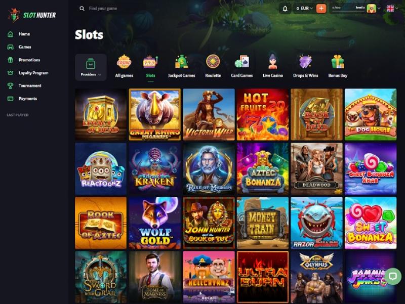 يضم كازينو Slot Hunter مكتبة ألعاب سلوتس رائعة، حيث يضم أكثر من 2200 لعبة من عشرات المطورين المختلفين. هناك ألعاب من أمثال NetEnt وMicrogaming وWMS وYggdrasil وغيرها. ستجد وفرة من الألعاب للاختيار من بينها، وستجد جوائز كبرى متزايدة وألعاب سلوتس للهواتف المحمولة متاحة للفوز بها.برنامج نقاط المنافسة