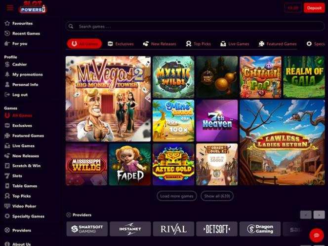 كازينو سلوت باورز مدعوم من BetSoft, Genesis Gaming, Rival, Saucify, Vivo Gaming, Spinomenal, Felix Gaming, Fugaso, Radi8 Games, Fresh Deck Studios, Woohoo Games, Qora Games, SmartSoft Gaming, Tom Horn Gaming, Genii, Wager Gaming, Dragon Gaming and Dragoon Soft ، وتُقدم ألعابه عبر برنامج قابل للتنزيل، بالإضافة إلى منصة لعب فوري تتيح اللعب عبر متصفح الإنترنت. لا يدعم حاليًا اللعب عبر الهاتف المحمول، وهو أمر مخيب للآمال.المقامرة المسؤولة ودعم العملاء والأمان