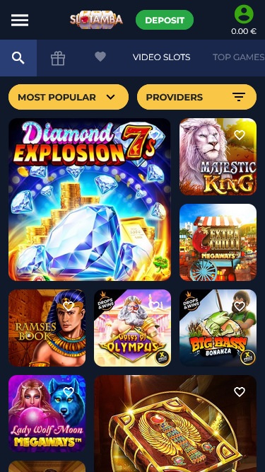 بعض الفتحات الموصى بها هي: Diamond Explosion 7s، Majestic King، Extra Chilli، Ramses Book، Gates of Olympus، Big Bass Bonanza، Lady Wolf Moon Megaways، Rich Wilde and the Book of Dead، Book of Rebirth، Sweet Bonanza، Egyptian Sun، The Wild Wings of Phoenix، Starburst Xxxtreme، Wilds Of Fortune، Money Train 3، Cheeky Fruits 6 Deluxe، Starlight Riches، Power Of Gods: Valhalla، Cash Pig، Fruit Shop، Gemini Joker، Fortune Reels، Book of Oil، Legacy of Dead، Party Fruits، Mayan Cache، Gonzo's Quest Megaways، Primate King، Crazy Coin Flip، Kaiser، Book of Demi Gods II، Take Olympus، Amazing Link Zeus، Power of Gods: Hades، Starburst، Secrets of The Nile، Wild Tundra، Book Of Demi Gods IV، Precious 7، Aztec Stargems، Elite of Evil - Portal of Gold، ملكة الفايكنج، حارس البكرة، الحبار من الأعماق، الكأس الذهبية، غارة المكافأة، شريف كولت، فتحات الحرق...