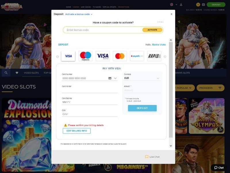 خيارات الخدمات المصرفية في Slotamba Casino