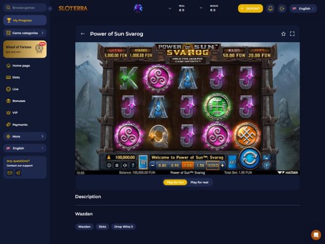 لم يحصل Sloterra Casino على تأييد من Wizard of Odds.