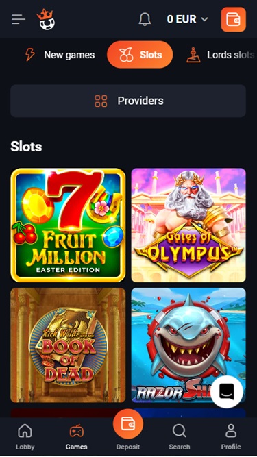 تعرض الصفحة الرئيسية أفضل العروض الترويجية الحالية، بالإضافة إلى أحدث الألعاب وأكثرها شعبية. كما يمكن للاعبين هنا الاطلاع على مزودي البرامج المتاحين وطرق الدفع المُختارة بشكل متكرر. في أسفل الموقع، يمكنك الاطلاع على صفحات مهمة مثل الشروط والأحكام، وسياسة الخصوصية، والترخيص، والمقامرة المسؤولة.