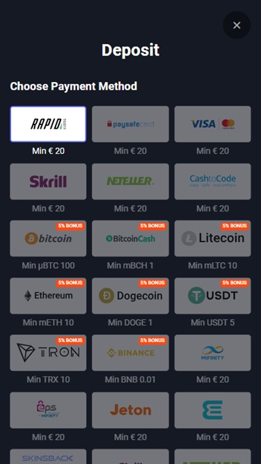 يوفر المشغل خيارات دفع متعددة. تشمل الطرق التقليدية فيزا ، وماستركارد ، والتحويل البنكي ، ونتلر ، ونيوسورف ، وماتش بيتر ، وميفينيتي ، وباي سيف كارد ، وغيرها. في المقابل، تشمل الخيارات الحديثة العملات المشفرة مثل بيتكوين ، وبيتكوين كاش ، ودوجكوين ، وإيثريوم ، ولايتكوين ، وترون ، وتيثر ، وكاردانو .