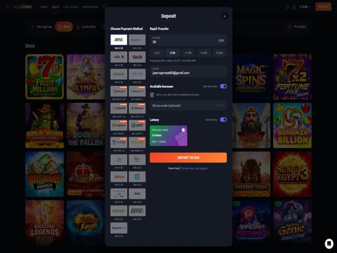 لقد أدرك كازينو SlotLords هذه المهمة بوضوح، إذ يتيح للمستخدمين تجربة ألعاب من أكثر من 140 مطور برامج ، مما يجعله من أوسع المكتبات التي رأيناها. يمكن لجميع أنواع اللاعبين العثور على مئات الألعاب التي تناسبهم تمامًا دون أي مشاكل.