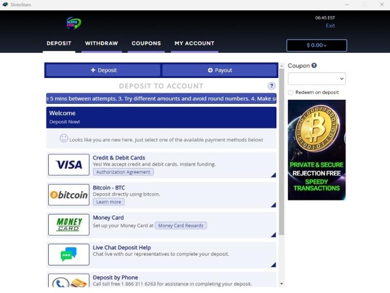 خيارات الخدمات المصرفية في Sloto Stars Casino