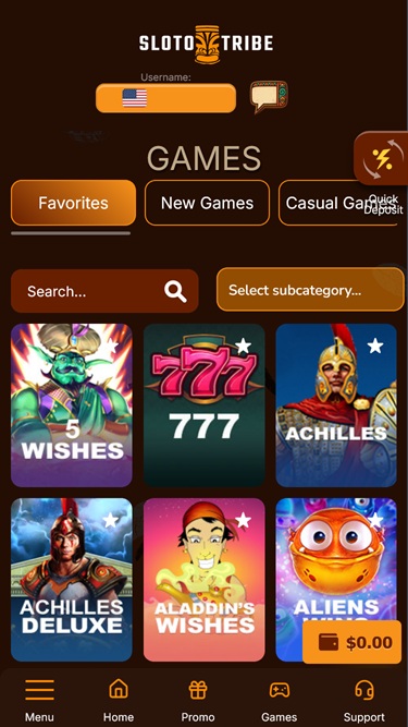 قبل أن نتعمق في استعراض مجموعة ألعاب الكازينو، تجدر الإشارة إلى أن كازينو Sloto Tribe متوفر على كلٍّ من أجهزة الكمبيوتر والهواتف المحمولة، بغض النظر عن حجم الشاشة أو نظام التشغيل. مع ذلك، تجدر الإشارة إلى أنه للحصول على تجربة لعب سلسة وتحميل سريع للألعاب، يجب توفير اتصال إنترنت مستمر.
