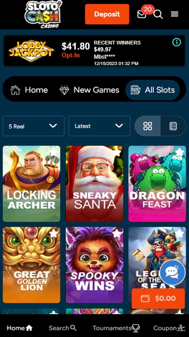 تتوفر العشرات من ألعاب السلوتس في Sloto' Cash، مع مكتبة RTG الكاملة في الكازينو. تتراوح الألعاب من السلوتس التقليدية إلى ألعاب الفيديو الحديثة التي قد تتضمن جوائز كبرى متزايدة وجوائز نقدية كبيرة.