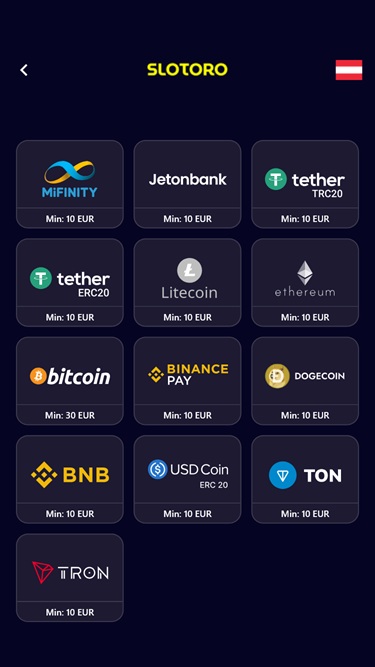 لاحظ أيضًا أن العملات الورقية والعملات المشفرة المتاحة في هذا الكازينو عبر الإنترنت تشمل Bitcoin وDogecoin وEthereum وLitecoin وToncoin وTRON وUSD Coin وTether والدولار الكندي والفرنك السويسري والكرونة الدنماركية واليورو والفورنت المجري والكرونة النرويجية والدولار النيوزيلندي والزلوتي البولندي والليو الروماني والكرونا السويدية والدولار الأمريكي.