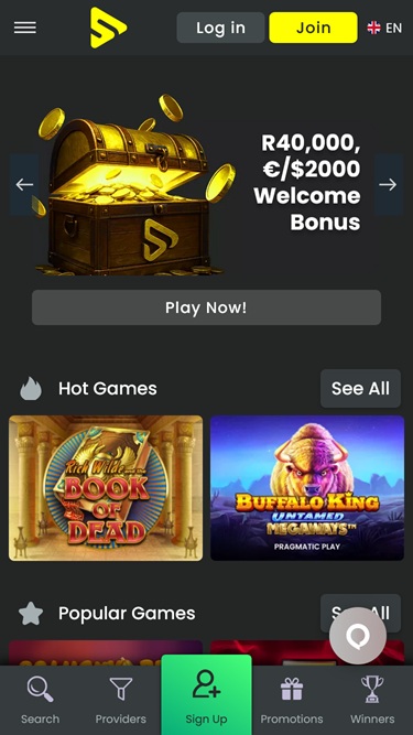 للوهلة الأولى، لاحظنا أن منصة الكازينو هذه تركز على اللاعبين. وهذا ما يُقدّره عادةً كل من الأعضاء الجدد والقدامى. كل شيء هنا سهل الاستخدام ومباشر، بما في ذلك عملية التسجيل التي تتم بثلاث خطوات بسيطة، والموافقة على شروط وأحكام الكازينو وسياسة الخصوصية.