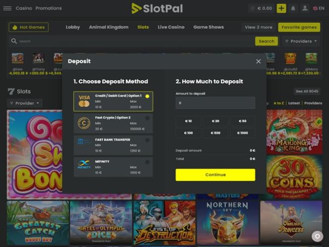 بعد إتمام عملية التسجيل، ستتمكن من الوصول إلى لوحة تحكم اللاعب. ستتمكن من تصفحها بسهولة تامة، سواءً كنت تستخدم جهاز الكمبيوتر أو الهاتف المحمول، لأن Slotpal متوافق مع جميع الأجهزة. هذا يعني أيضاً أن لعب ألعاب الكازينو أثناء التنقل سيكون في غاية السهولة.