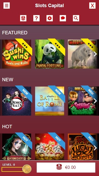 يقدم Slots Capital برنامج مكافآت، يزداد مع كل دولار تنفقه في الكازينو. 1000 نقطة تعادل دولارًا واحدًا من النقود الحقيقية، يُودع في حسابك. يجب المراهنة بأموال المكافآت مرة واحدة على الأقل قبل بدء عملية السحب.معلومات الترخيص