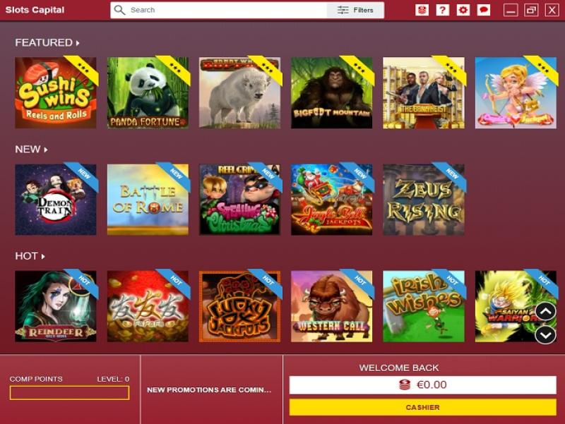 باستخدام برنامج Rival، توفر Slots Capital عشرات من ألعاب الفيديو وألعاب السلوتس الكلاسيكية، والتي غالبًا ما تتميز بموضوعات نابضة بالحياة وميزات قياسية. ويتوج هذا العدد الهائل من ألعاب السلوتس المعروضة وجود عدد محدود من الجوائز الكبرى التراكمية المرتبطة بأربع من هذه الألعاب، والتي تقدم جوائز كبرى بقيمة آلاف الدولارات.برنامج نقاط المنافسة