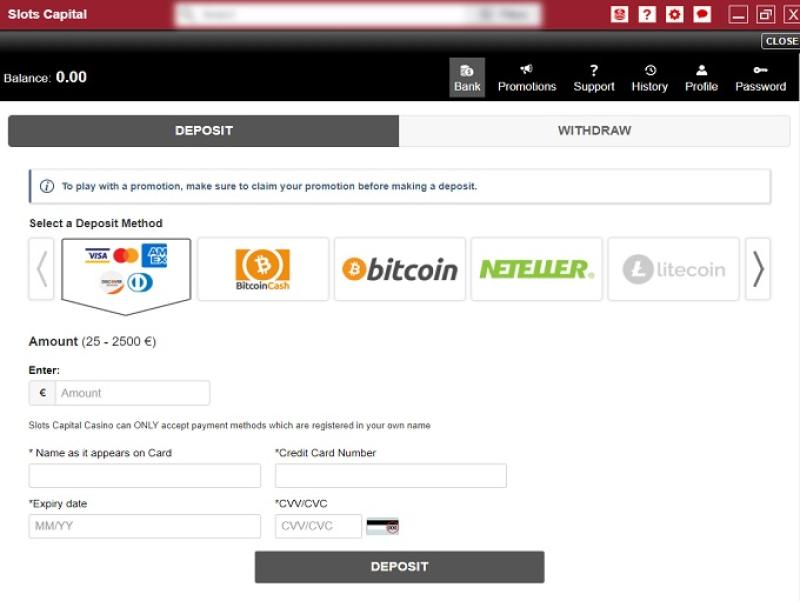 يعتمد موقع Slots Capital على BetSoft, Genesis Gaming, Rival, Saucify, Arrows Edge, Radi8 Games, Woohoo Games, Qora Games, Genii, Wager Gaming, Dragon Gaming and Dragoon Soft ، مما يسمح له بتقديم سلسلة كبيرة من ألعاب الطاولة والفتحات والألعاب المتخصصة لعملائه.خيارات الخدمات المصرفية في Slots Capital Casino
