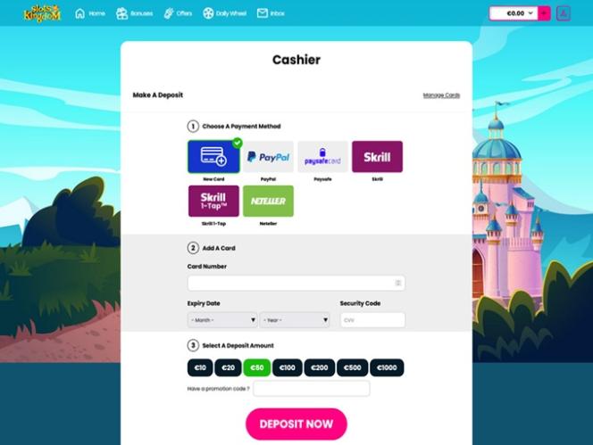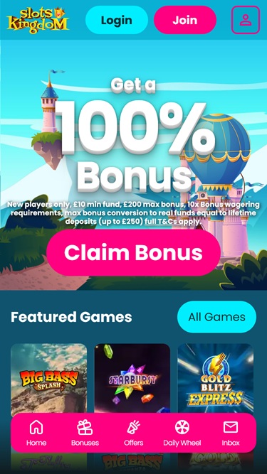 كازينو Slots Kingdom يعمل بنظام Microgaming, Net Entertainment, Playtech, 1x2gaming, Barcrest, Big Time Gaming, ELK Studios, lightningboxgames, Oryx, Play'n GO, playson, Quickspin, Thunderkick, Yggdrasil, Wazdan, Realistic Games, Booming Games, Pragmatic Play, Nolimit City, Red Tiger Gaming, Spinomenal, Red Rake Gaming, FunFair, Spin Games, Triple Edge Studios, Northern Lights Gaming, Stormcraft Studios, Switch Studios, Bulletproof Games, All41 Studios, Gluck Games, Gameburger Studios, Pulse 8 Studios, Neon Valley Studios, Golden Rock Studios, Shuffle Master, SpinPlay Games, HungryBear Gaming, Real Dealer Studios, GONG Gaming, Blue Guru Games, On Air Entertainment, Buck Stakes Entertainment, Design Works Gaming, Games Global, 2by2 Gaming, Ash Gaming, Bally Technologies, bluberi, Blueprint Gaming, Jumpman Gaming, Leander Games, Merkur Gaming, NextGen, NYX Interactive, Tom Horn Gaming, Inspired Gaming, Gaming Realms, SG Interactive, Gamomat, Red7Mobile, Scientific Games, Reel Time Gaming, Authentic Gaming, Iron Dog Studio, Old Skool Studios, Foxium, Betdigital, Just For The Win, The Games Company, Reflex Gaming, MetaGU, PearFiction Studios, Wild Streak Gaming, Slingshot Studios, Fortune Factory Studios, Jade Rabbit Gaming, 4ThePlayer, AvatarUX, Gamevy, Crazy Tooth Studio, ReelPlay, Alchemy Gaming, Rarestone Gaming, Snowborn Games, Boomerang Studios, Hacksaw Gaming, Max Win Gaming, Gold Coin Studios, Bang Bang Games, Half Pixel Studios, Peter And Sons, Aurum Signature Studios, Lucksome Gaming, Area Vegas, RAW iGaming, Wishbone Games, Circular Arrow, HammerTime Games, INO Games, Nailed It! Games, Atomic Slot Lab, Neko Games, Reel Kingdom, Oros Gaming, Indigo Magic and Light & Wonder ، ويتم توفيره عبر منصة لعب فوري عبر الإنترنت. هذا يعني أن الكازينو يُحمّل مباشرةً عبر متصفحك دون الحاجة إلى تنزيل أي شيء. كما يدعم الكازينو اللعب عبر الأجهزة المحمولة بالكامل، مما يتيح لك الوصول إلى الألعاب على هاتفك الذكي أو جهازك اللوحي.