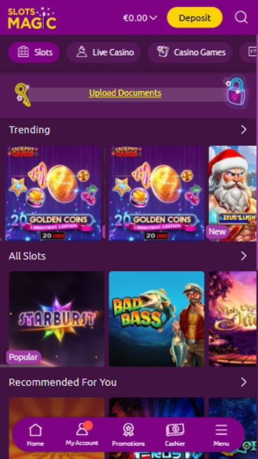 يتم تشغيل Slots Magic Casino بواسطة Microgaming , Net Entertainment , Playtech , 1x2gaming , Barcrest , Big Time Gaming , ELK Studios , Evolution Gaming , EYECON , Ezugi , lightningboxgames , Oryx , Play'n GO , playson , Quickspin , Rabcat , Relax Gaming , Thunderkick , Yggdrasil , Wazdan , Realistic Games , Booming Games , Stakelogic , Pragmatic Play , Nolimit City , Red Tiger Gaming , IGT , Red Rake Gaming , Fantasma Games , SYNOT Games , Kalamba , Spin Games , Spadegaming , Triple Edge Studios , BGAMING , Northern Lights Gaming , Stormcraft Studios , Switch Studios , Electric Elephant Games , Bulletproof Games , All41 Studios , Gluck Games , Gameburger Studios , Pulse 8 Studios , Shuffle Master , SpinPlay Games , GONG Gaming , Blue Guru Games , Lady Luck Games , Holle Games , Buck Stakes Entertainment , Games Global , Amusnet Interactive , Ash Gaming, Bally Technologies, bluberi , Blueprint Gaming , Leander Games, Merkur Gaming, NextGen , NYX Interactive, Push Gaming, WMS, Inspired Gaming, Gaming Realms, SG Interactive, Gamomat, Red7Mobile, Scientific Games, Side City Studios, Reel Time Gaming, Authentic Gaming, BF Games, Bally Wulff, Iron Dog Studio, Old Skool Studios, Foxium, Betdigital, Just For The Win, Reflex Gaming, Storm Gaming Technology, Wild Streak Gaming, Golden Hero, Fortune Factory Studios, STHLM Gaming, 4ThePlayer, AvatarUX, Gamevy, High 5 Games, ReelPlay, Japan Technicals Games, Alchemy Gaming, Rarestone Gaming, Boomerang Studios, Hacksaw Gaming, Max Win Gaming, SilverBack Gaming, Peter And Sons, Eurostar Studios, Armadillo Studios , Lucksome Gaming, Atomic Slot Lab , Galaxsys, NowNow Gaming and Kitsune Studios ، مما يمنحه مكتبة عميقة من الألعاب التي يمكنك الوصول إليها مباشرة من خلال متصفح الويب الخاص بك.