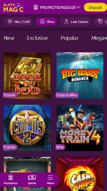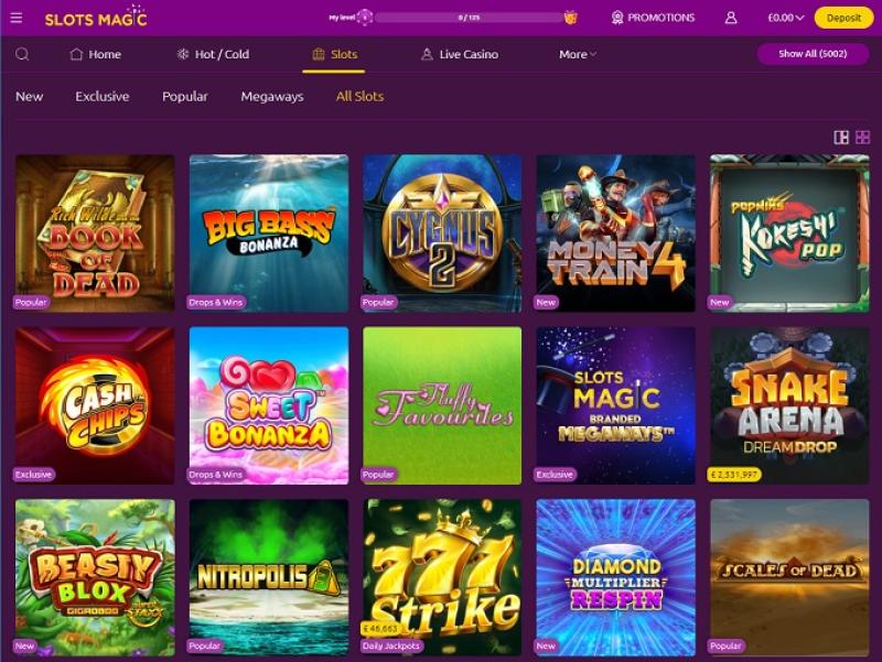 يتم تشغيل Slots Magic Casino بواسطة Microgaming, Net Entertainment, Playtech, 1x2gaming, Barcrest, Big Time Gaming, ELK Studios, Evolution Gaming, EYECON, Ezugi, lightningboxgames, Oryx, Play'n GO, playson, Quickspin, Rabcat, Relax Gaming, Thunderkick, Yggdrasil, Wazdan, Realistic Games, Booming Games, Stakelogic, Pragmatic Play, Nolimit City, Red Tiger Gaming, IGT, Red Rake Gaming, Fantasma Games, SYNOT Games, Kalamba, Spin Games, Spadegaming, Triple Edge Studios, BGAMING, Northern Lights Gaming, Stormcraft Studios, Switch Studios, Electric Elephant Games, Bulletproof Games, All41 Studios, Gluck Games, Gameburger Studios, Pulse 8 Studios, Shuffle Master, SpinPlay Games, GONG Gaming, Blue Guru Games, Lady Luck Games, Holle Games, Buck Stakes Entertainment, Games Global, Amusnet Interactive, Ash Gaming, Bally Technologies, bluberi, Blueprint Gaming, Leander Games, Merkur Gaming, NextGen, NYX Interactive, Push Gaming, WMS, Inspired Gaming, Gaming Realms, SG Interactive, Gamomat, Red7Mobile, Scientific Games, Side City Studios, Reel Time Gaming, Authentic Gaming, BF Games, Bally Wulff, Iron Dog Studio, Old Skool Studios, Foxium, Betdigital, Just For The Win, Reflex Gaming, Storm Gaming Technology, Wild Streak Gaming, Golden Hero, Fortune Factory Studios, STHLM Gaming, 4ThePlayer, AvatarUX, Gamevy, High 5 Games, ReelPlay, Japan Technicals Games, Alchemy Gaming, Rarestone Gaming, Boomerang Studios, Hacksaw Gaming, Max Win Gaming, SilverBack Gaming, Peter And Sons, Eurostar Studios, Armadillo Studios, Lucksome Gaming, Atomic Slot Lab, Galaxsys, NowNow Gaming and Kitsune Studios ، مما يمنحه مكتبة عميقة من الألعاب التي يمكنك الوصول إليها مباشرة من خلال متصفح الويب الخاص بك.