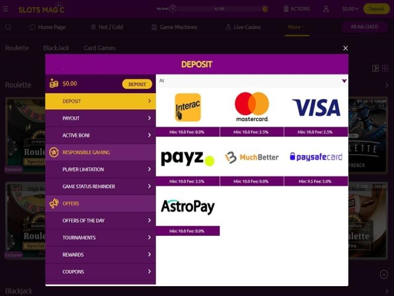 تُشكّل ماكينات القمار جزءًا كبيرًا من مكتبة كازينو سلوتس ماجيك، وستجد هنا ماكينات قمار كلاسيكية وفيديو. يُقدّم الكازينو جوائز كبرى تصاعدية كبيرة، ولكن نظرًا لحدود السحب المنخفضة، ستنتظر أموالك لفترة طويلة.