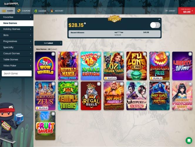 في البداية، نود أن نذكر أن كازينو "سلوتس نينجا" ليس كازينو إلكترونيًا مخصصًا لألعاب السلوتس فقط. سيتمكن زوار هذا الموقع من استكشاف العديد من الفئات الجذابة، بما في ذلك: الألعاب الجديدة، والألعاب التقدمية، وألعاب السلوتس، والألعاب المتخصصة، وألعاب الطاولة، وألعاب الفيديو بوكر. وقت كتابة هذه المراجعة، كان القسم الوحيد المفقود هو قسم كازينوهات الموزع المباشر .