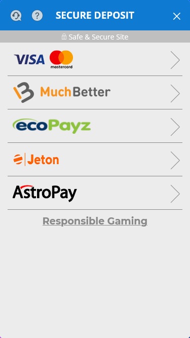 على الرغم من عدم توفرخيارات دفع بالعملات المشفرة ، يقدم موقع الألعاب هذا مجموعة عادلة من طرق الدفع بما في ذلك بعض المحافظ الإلكترونية الأكثر ثقة، وبطاقات الخصم والائتمان، والتحويلات المصرفية الفورية والمزيد.