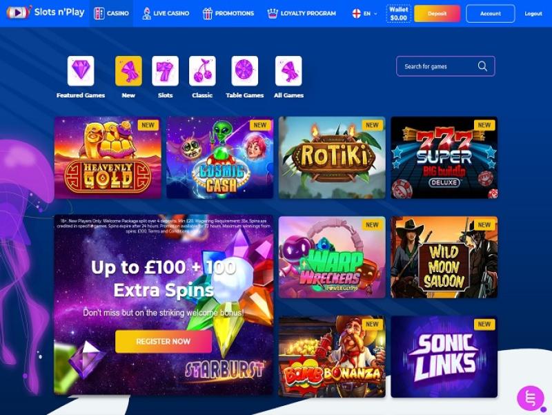 يتضمن كازينو Slots n'Play ألعابًا تم إنتاجها بواسطة بعض مطوري برامج الكازينو عبر الإنترنت الأكثر شهرة: BetSoft Gaming، وPlay'n Go، وEvolution Gaming، وEzugi والعديد من الشركات الأخرى ويمكن للمقامرين الاعتماد على محتويات المقامرة عالية الجودة والكثير من المرح.