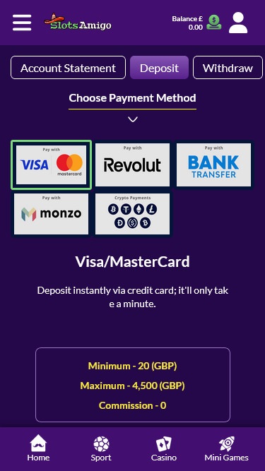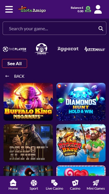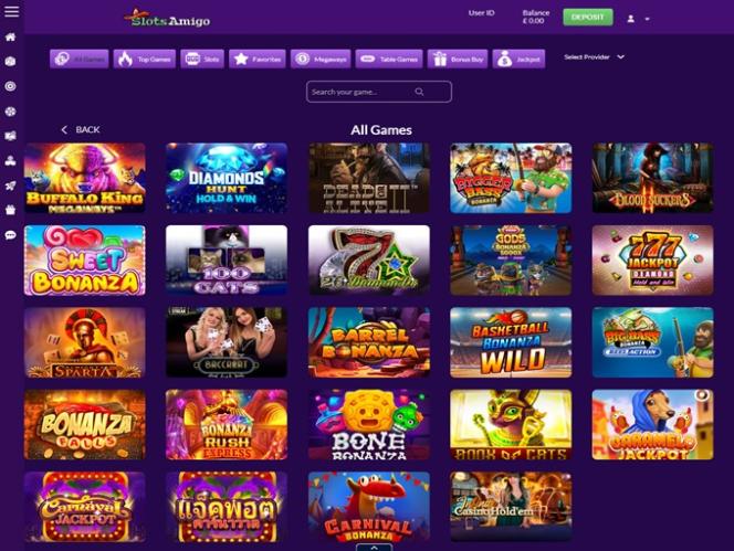 SlotsAmigo كازينو إلكتروني متكامل، يجذب اللاعبين من المملكة المتحدة بشكل رئيسي، ويوفر لهم مجموعة واسعة من ألعاب القمار، بما في ذلك ماكينات القمار بأموال حقيقية، وألعاب الموزعين المباشرين، وألعاب الطاولة، والألعاب المصغرة، بالإضافة إلى العديد من خيارات المراهنات الرياضية والرياضات الافتراضية. يمكن للاعبين الاستمتاع بالعروض الترويجية والمكافآت والفعاليات، مع إمكانية إدارة أموالهم إما عبر الخدمات المصرفية التقليدية أو عبر العملات المشفرة الحديثة.