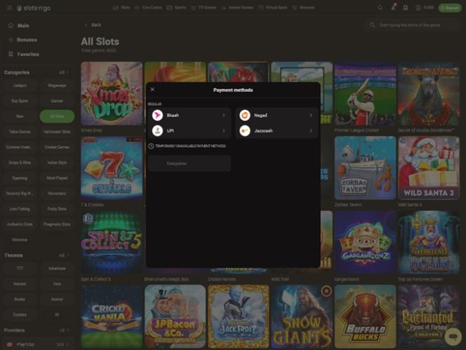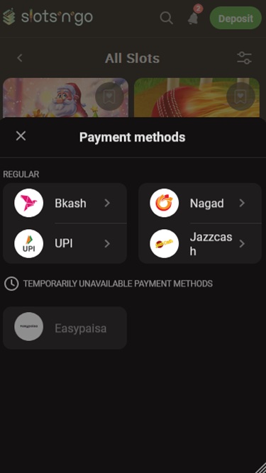 خيارات الخدمات المصرفية في Slotsngo Casino