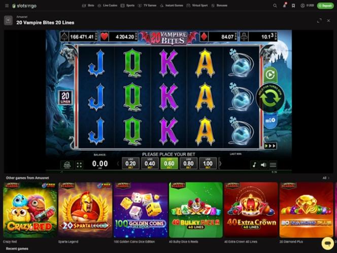 لقد أُعجبنا بعدد ألعاب القمار المتاحة بأموال حقيقية في كازينو Slotsngo، وسيُعجب بذلك أيضًا كل مُحب لهذا النوع من الألعاب. يضم الكتالوج آلافًا من ألعاب القمار الرائعة التي يُمكنك استكشافها، وهذه هي الألعاب التي استمتع بها اللاعبون أكثر من غيرها: