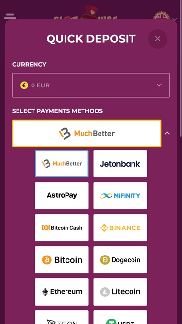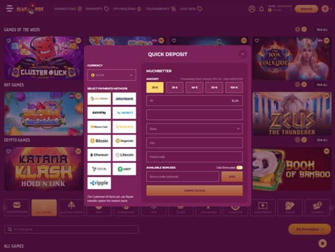إليكم قائمة طرق الدفع في كازينو SlotVibe: