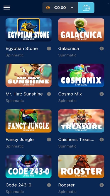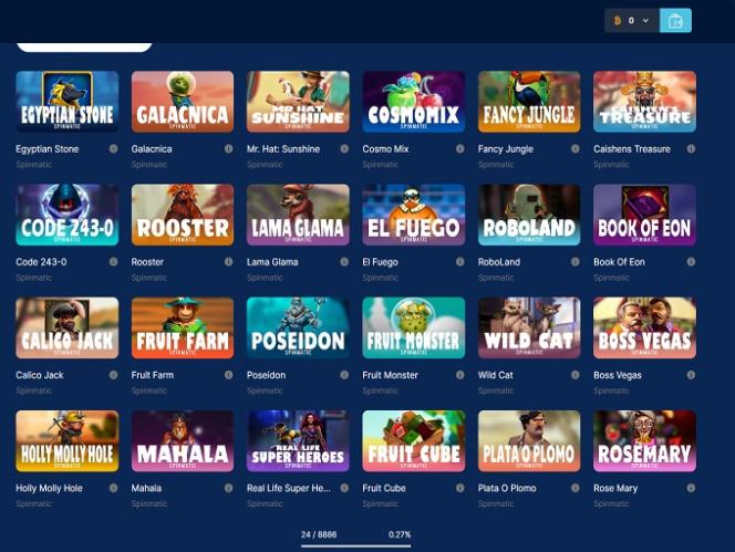كما يوحي اسم الكازينو، يمكنك هنا تجربة مجموعة هائلة من ألعاب ماكينات القمار على الإنترنت . أشهرها: Egyptian Stone، وBig Bass Bonanza، وLucky Streak 3، وBook of Eon، وSharky Frenzy، وSugar Rush، و1001 Spins، وGalacnica، وPoseidon، وGates of Olympus، وBamboo Fortune، وCygnus 2، وMadame Destiny Megaways، وSan Quentin xWays، وWild Cat، وBonanza Megaways، وDragon Orb، وSweet Bonanza Xmas، وDork Unit، وHell Hot 100، وMedusa Money.