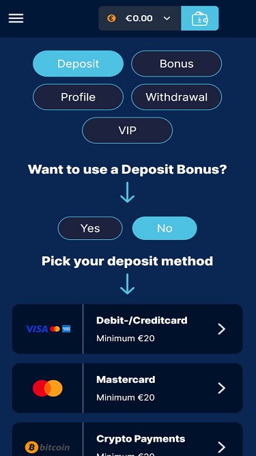 أما من يفضل الاعتماد على الخيارات التقليدية فسيكون قادرًا على الاختيار بين طرق مثل Visa و Mastercard و American Express و Bank Wire Transfer و Astropay وecoPayz وPaykasa وغيرها.