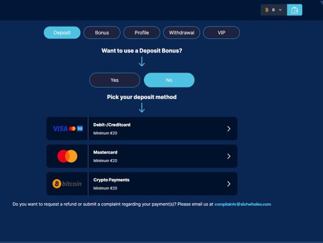 خيارات الخدمات المصرفية في Slotwhales Casino