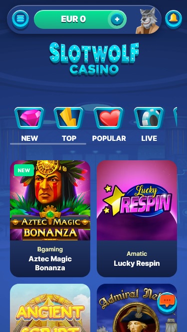 كازينو SlotWolf مدعوم بواسطة Microgaming, Net Entertainment, BetSoft, 1x2gaming, Amatic Industries, ELK Studios, Evolution Gaming, iSoftBet, lightningboxgames, Oryx, Play'n GO, playson, Rabcat, Relax Gaming, Thunderkick, Yggdrasil, Endorphina, Wazdan, Realistic Games, Booming Games, Pragmatic Play, Nolimit City, GAMING1, Red Tiger Gaming, Spinomenal, Red Rake Gaming, Skillzzgaming, Fantasma Games, Revolver Gaming, Triple Edge Studios, BGAMING, Northern Lights Gaming, Stormcraft Studios, Electric Elephant Games, Pocket Games Soft, Dreamtech Gaming, Bulletproof Games, All41 Studios, Pulse 8 Studios, Neon Valley Studios, Golden Rock Studios, Spearhead Studios, Swintt, TrueLab Games, SpinPlay Games, GONG Gaming, Lady Luck Games, Buck Stakes Entertainment, Games Global, Amusnet Interactive, Wizard Games, 2by2 Gaming, Ainsworth, NextGen, Pariplay, Push Gaming, Tom Horn Gaming, Authentic Gaming, Iron Dog Studio, Old Skool Studios, Foxium, Just For The Win, Reflex Gaming, Storm Gaming Technology, PearFiction Studios, Wild Streak Gaming, Slingshot Studios, Fortune Factory Studios, Jade Rabbit Gaming, 4ThePlayer, AvatarUX, Gamevy, Crazy Tooth Studio, High 5 Games, ReelPlay, Alchemy Gaming, Plank Gaming, BB Games, Black Pudding Games, Snowborn Games, Boomerang Studios, Hacksaw Gaming, Max Win Gaming, Gold Coin Studios, Bang Bang Games, Half Pixel Studios, Slotmill, SilverBack Gaming, Peter And Sons, Armadillo Studios, FlipLuck, Apparat Gaming, Neko Games and Reel Kingdom ، وتُقدم ألعاب المجموعة عبر منصة إنترنت تُحمّل عبر متصفح الويب. الموقع مصمم بشكل جيد وسهل التصفح، ويدعم الهواتف المحمولة بشكل كامل.